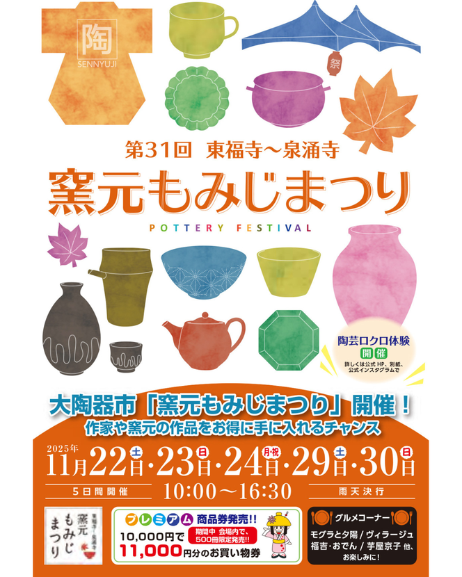 窯元もみじまつりは泉涌寺地区の京都青窯会協同組合と泉涌寺陶磁器青年会にて運営されています。