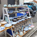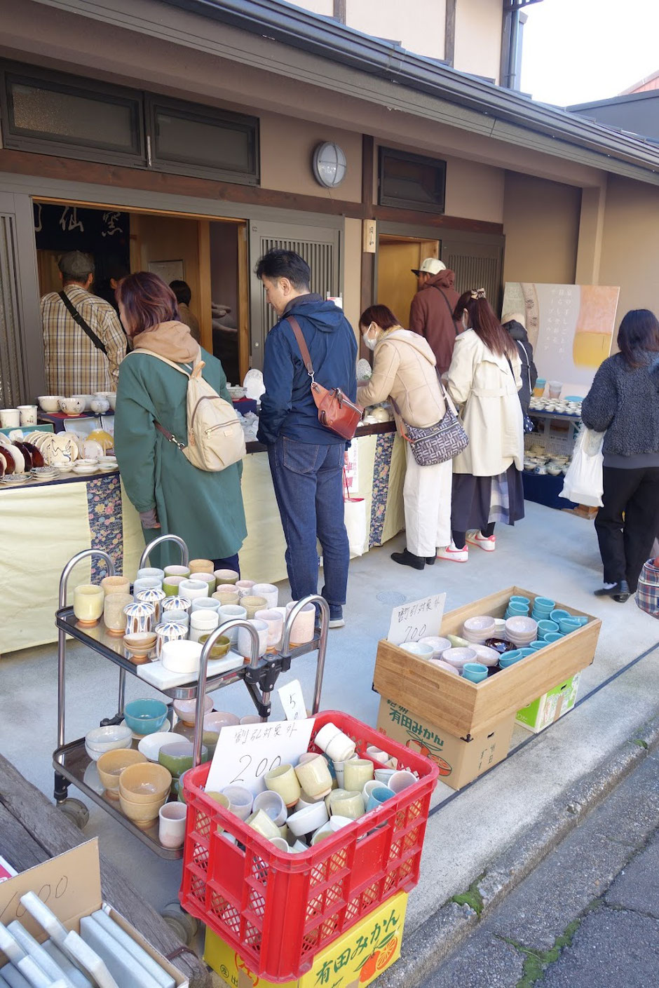 Every autumn, when the maple leaves turn brilliant red, the quiet residential streets near Tofukuji Temple and Sennyu-ji Temple in Kyoto come alive with pottery stalls.